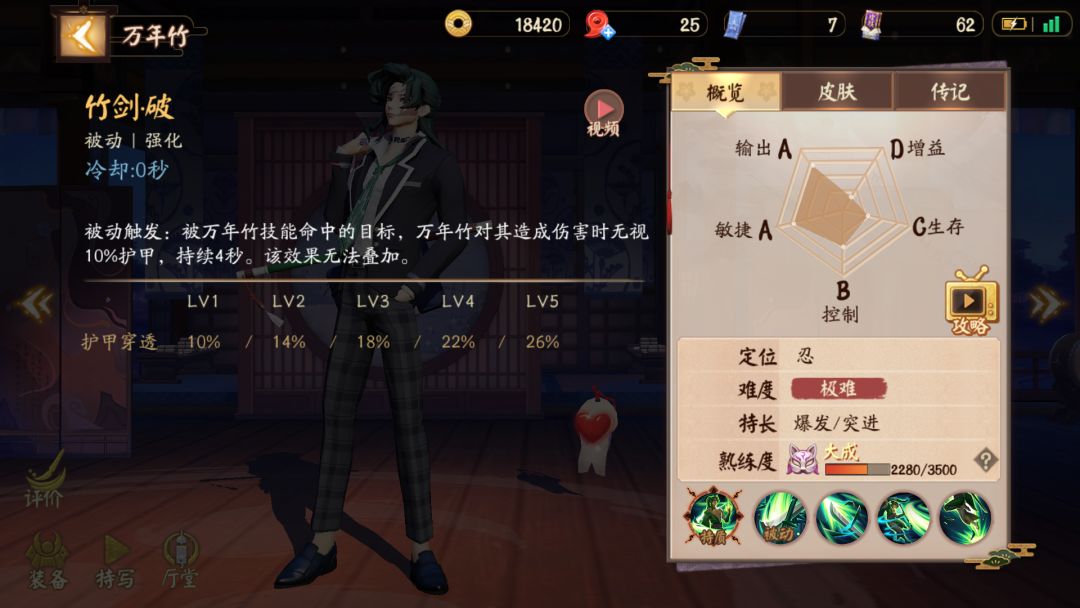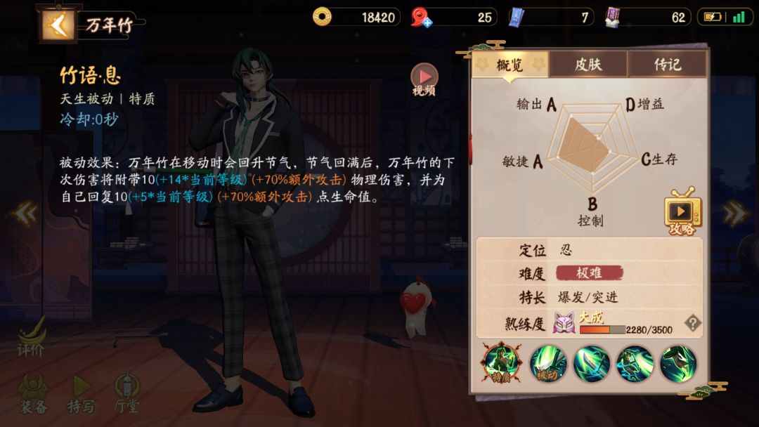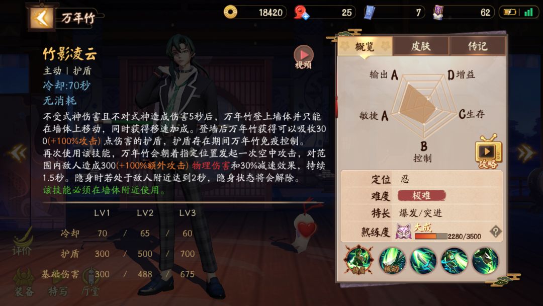 我并没有主玩一个式神,所以说我竹子只能算是玩的比较多,比较有经验罢了。大家仅供参考