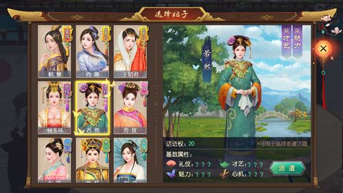 3.进入场地后玩家可选择派遣一位妃子(妃位达到美人)前去参加比拼。