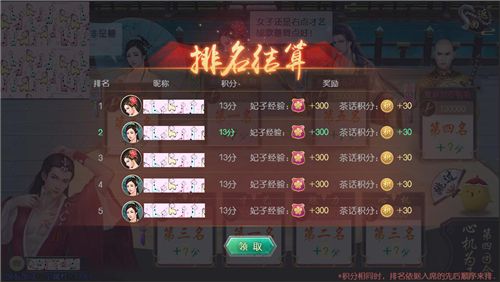 1)比拼结束将获得妃位经验和比拼积分,最终决定你的排行榜名次;