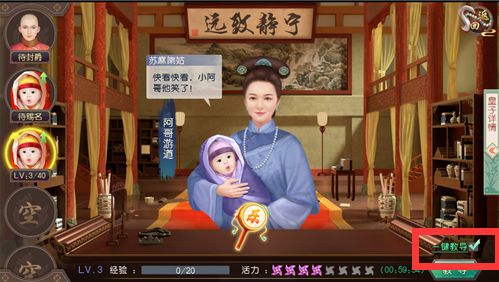 3.当前选中的皇子如果还有剩余活力,点击“一键教导”时会先用完剩余活力再使用活力丹恢复。保证绝不浪费自家孩子的宝贵活力~;