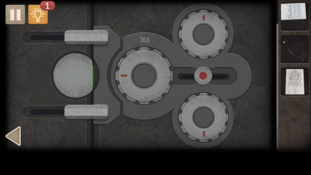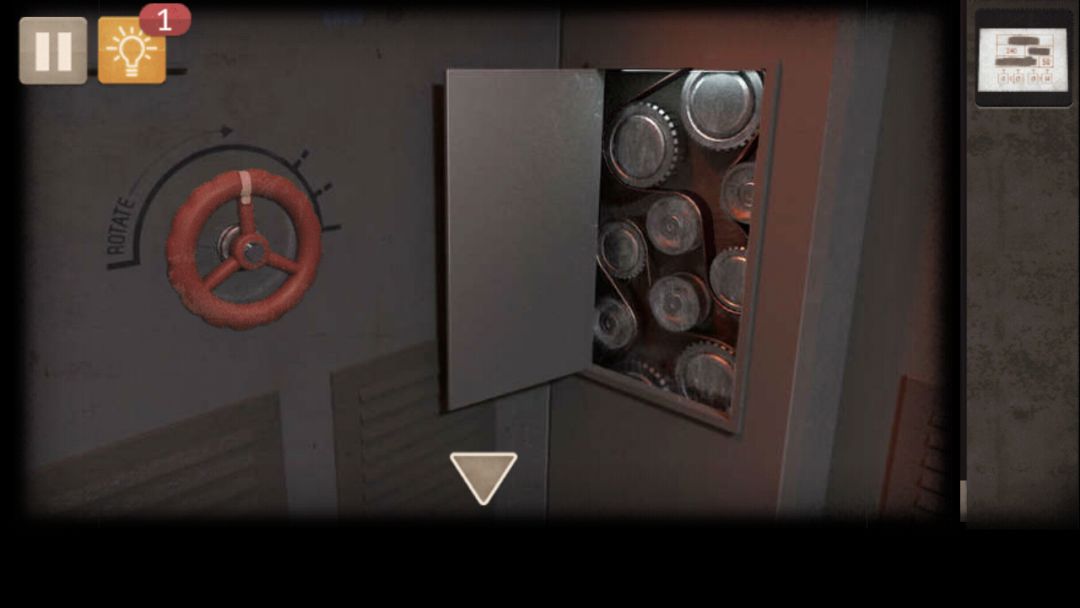 2. 进入房间左侧,发电机上获得图纸,结合图纸提示和发电机(i1i2i3i4总和为440) 得出答案60 180 150 50 扳手取下倒地燃料桶上方墙上的阀门,阀门、腰带安装到发电机(如图) 转动阀门