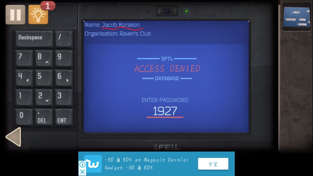 又得到一张纸,和漏字板组合,车外,水泼到干掉的泥巴上,使用刮刀,得到人名,Jacob Korakon,漏字板结合书架上的书获得密码(1927),U盘插入电脑,根据得到的人名选择JKRKN,输入1927