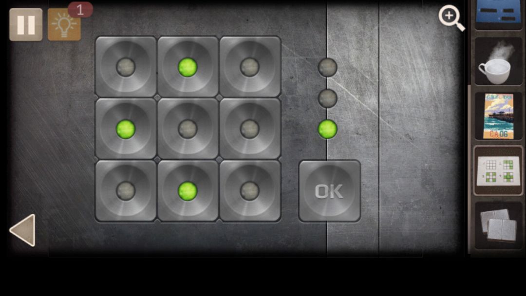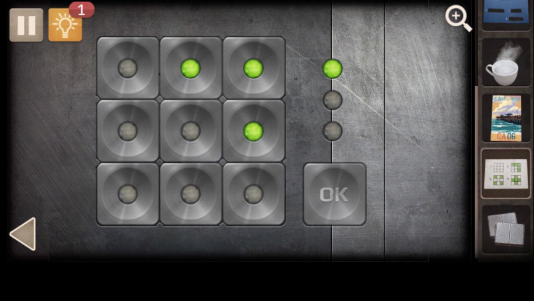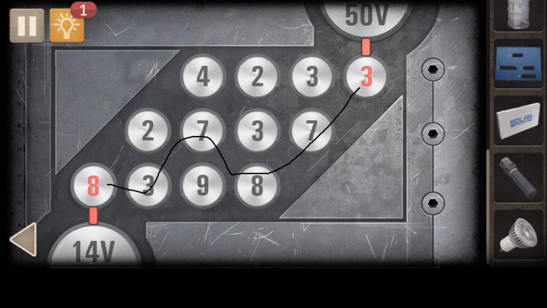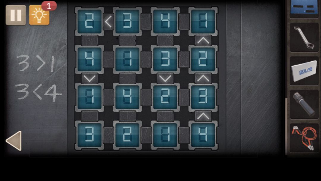 3. 微波炉旁拿到螺丝刀,上方柜子拿到锡纸,水龙头上方拿到水杯,水桶里的水倒入杯子,放进微波炉,得到热水,床上帽子下面拿到提示纸,解开水龙头下方第一个抽屉密码(对称2610)获得电池夹, 床上手电筒,取出电池,放入锡纸,再放入电池,获得手电筒,解开墙上左侧柜子密码(每行每列数字不重复,注意大小关系限制)