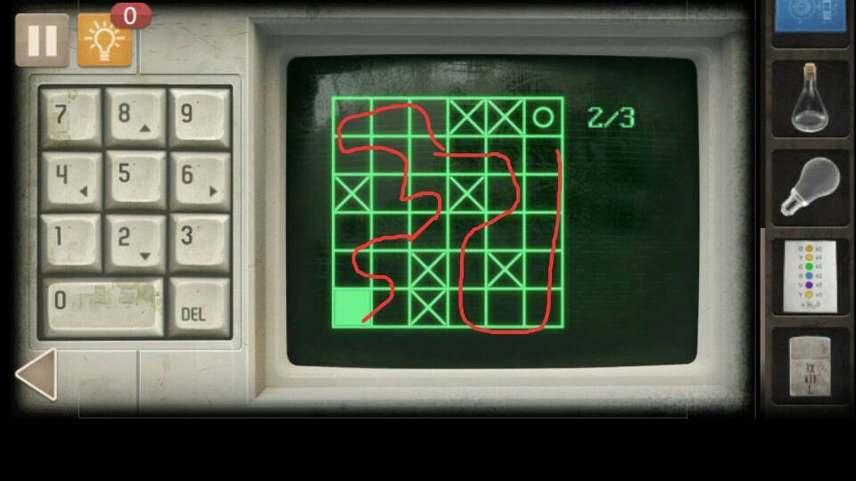 3. 到房间右侧,将钥匙卡放在电脑旁的读卡器上,从左下角到达右上角的圆圈即可(走过的方格不能再走 第一次每个方格都走一遍让打叉的方格显示出来)