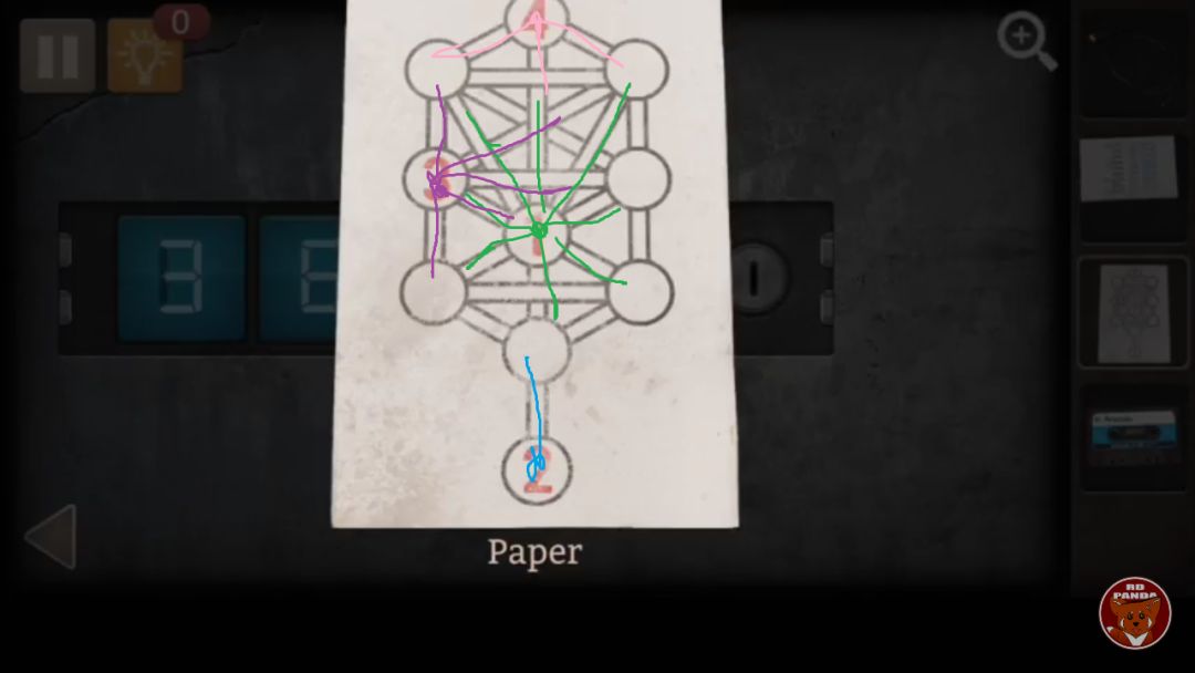 4. 到房间右侧,溶液破坏锁,进入房间后安装灯泡,退出房间,打开灯开关,蓝色箱子旁边拿到提示纸,得到密码8153 (这个要怎么解释啊,这个图看着真是糟心)