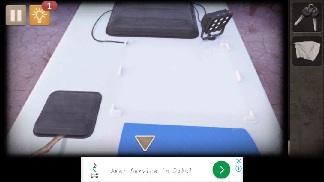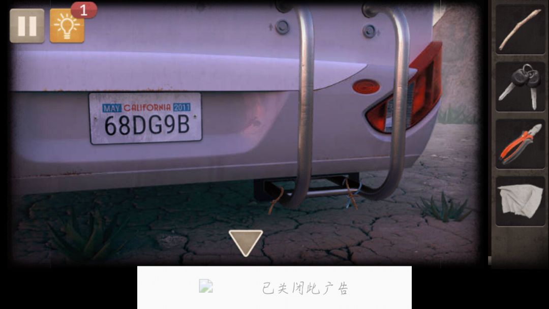 1. 地上捡到木棍,车尾捡到钥匙,钥匙打开车尾右侧行李箱(大概是叫行李箱?),得到钳字和抹布,钳子剪断车尾折梯的绳子