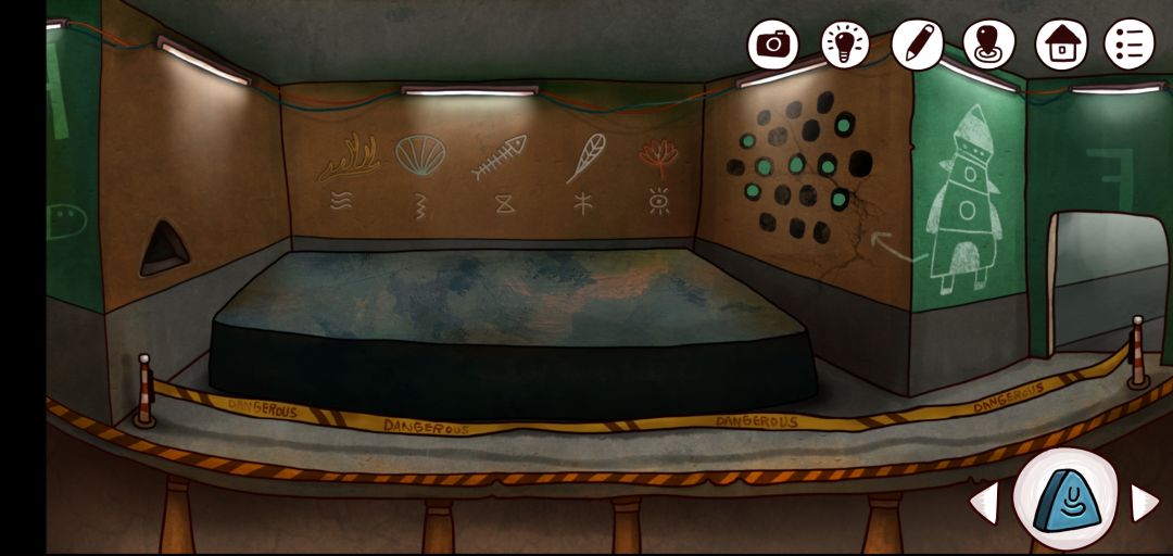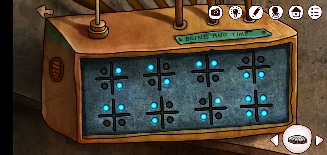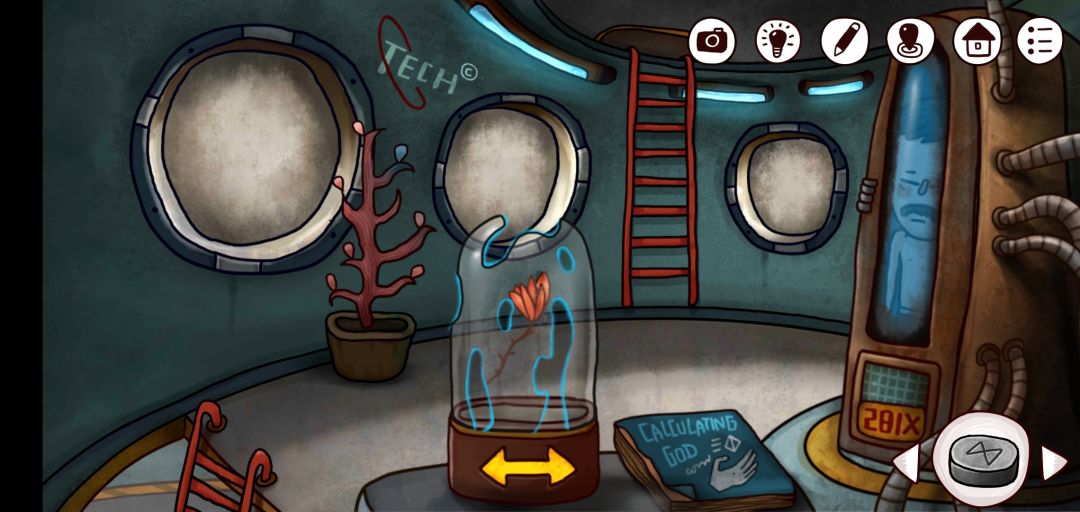 7.拿上入口处的灯泡💡,注意屏幕上的外星文字和屏幕显示的图案,这个关系开通时空机器的密码,从屋子里的书也能发现它们不简单了