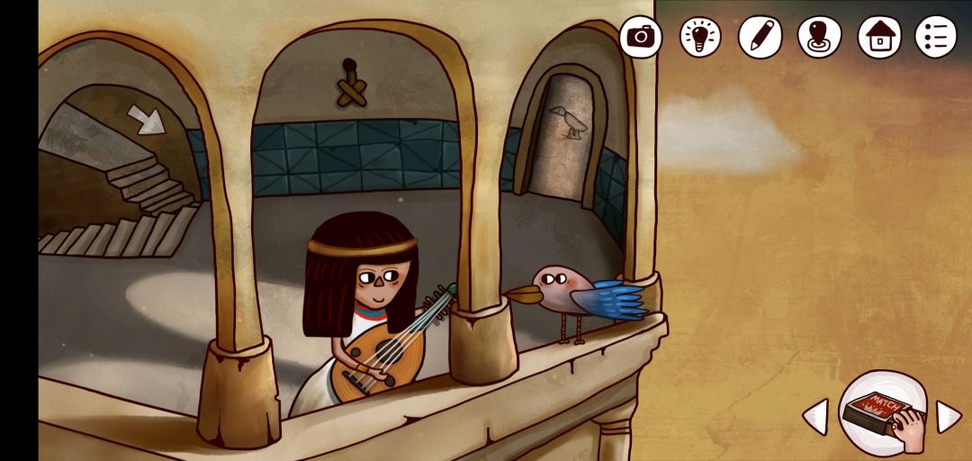 16.进门后把琴给小女孩,点琴按谱子弹它,谱子在上面说过,然后点燃后面的火把拿到蓝鸟的羽毛,进密室,把矛尖给人安上拿到宝石,右边的罐子点点有石饼