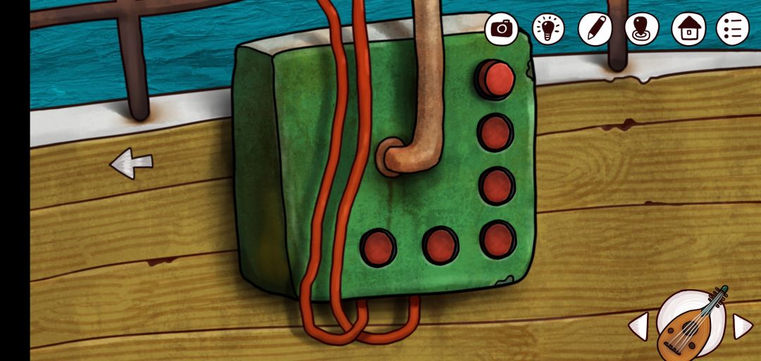 5.灯塔的图也只能自己努力了,先把不能换色的铁块放在不用的角落,然后尽量凑色,多玩几次就快起来了,灯亮了后回一楼用异形钥匙开锁,然后关掉开关,去二楼拿摇柄,用来开后面的音乐盒 对了二楼的阳台有一个男孩哦,刷成就可不能忘了他,他要玻璃瓶,玻璃瓶在实验室再往右