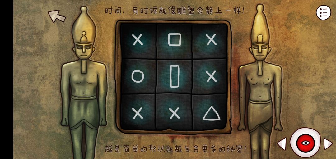22.根据开局提示图,摆好有另一个时空的人存放的影像,记好动作与20里的提示结合,飞行器升天后能收到彩蛋