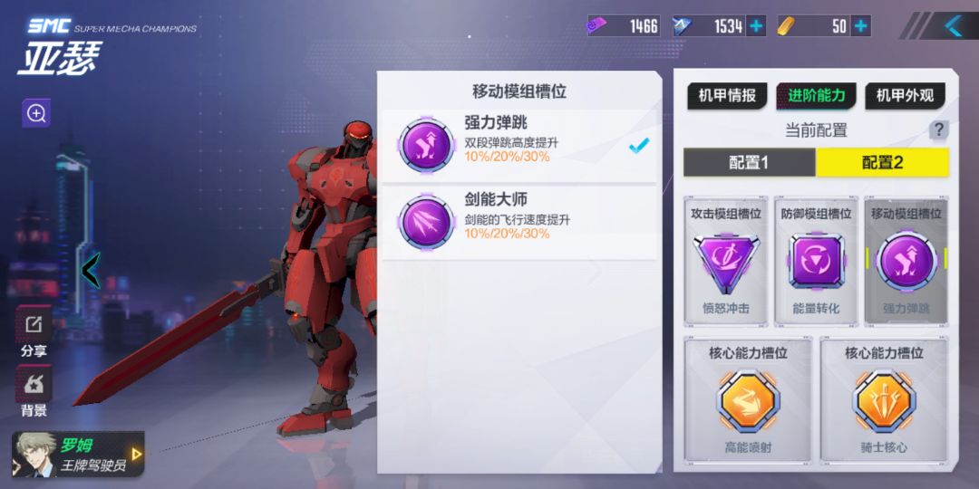 移动模组:剑能大师 或 强力弹跳