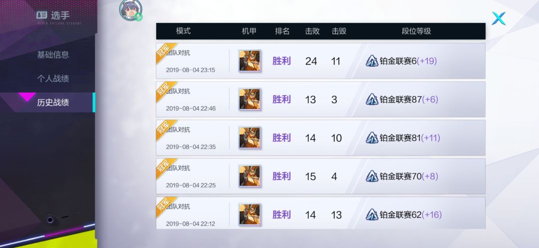 第四:打高机动机甲的时候如果对方距离很远千万不要想着过去,你会被秀到死,因为你过去要消耗至少一半的气槽,如果气槽不足以维持你的高机动性你就等死吧。打云雀,飞机,仙女的时候注意找掩体,等他们靠近了就一次性拆了他们别给第二次机会,拆了之后把那驾驶员往死里打(我就这样被追杀了半个地图最后第二)遇到云雀这种可以用旋风斩先起手打断他的跳跃,扔两下然后往斜上方60°甩剑气,这样既可以打到面前又可以在他跳起来甩到几下,触发被动他就等死了