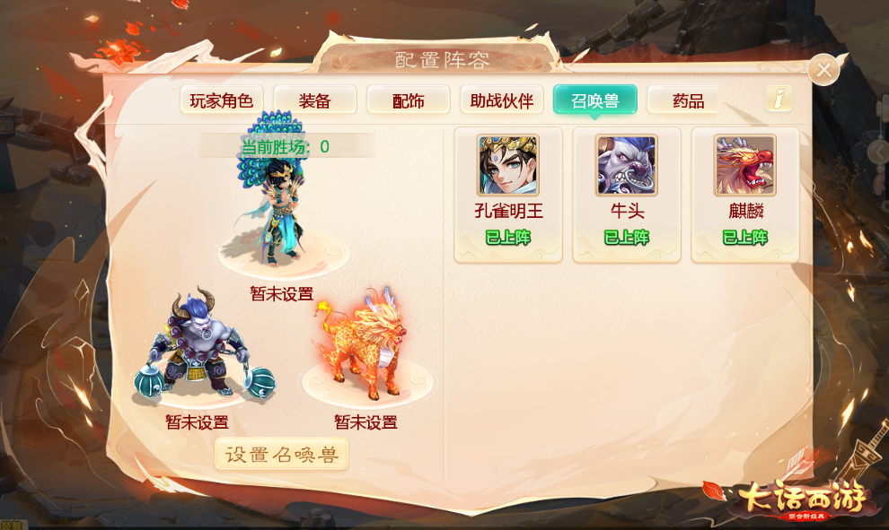 除了角色配置随机之外,角色参战的其他内容也需要玩家一一进行选择。玩家需要从系统随机的武器、项链、帽子、衣服、鞋子中各选择1件来搭配出整套装备,之后选择随机的套装技能和配饰。人物配置进行完毕后,玩家还需要在随机的助战NPC中选择一个用于阵容配置,并且确定召唤兽模板,完成所有的作战配置设定。