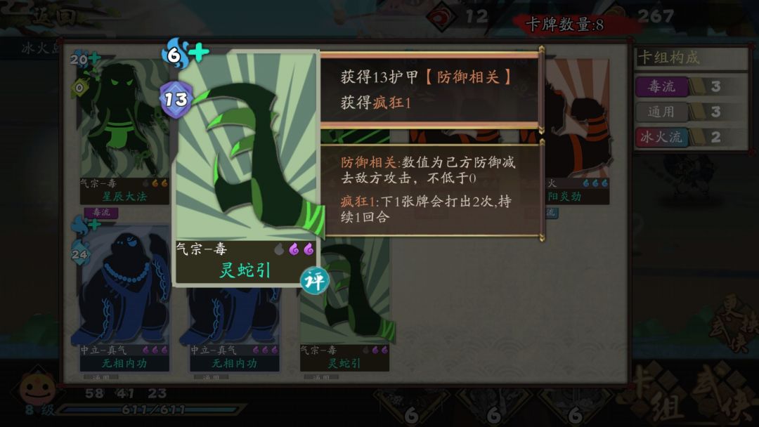 屠龙刀:删掉阳炎劲剩2-3张,删掉无相内功以外真气牌