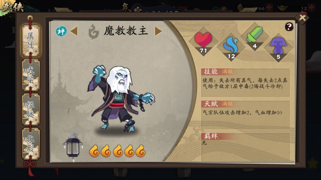 2.琴圣化形被动【中毒受到伤害翻倍】,直接让毒的伤害翻倍,后期可以直接换下魔教教主