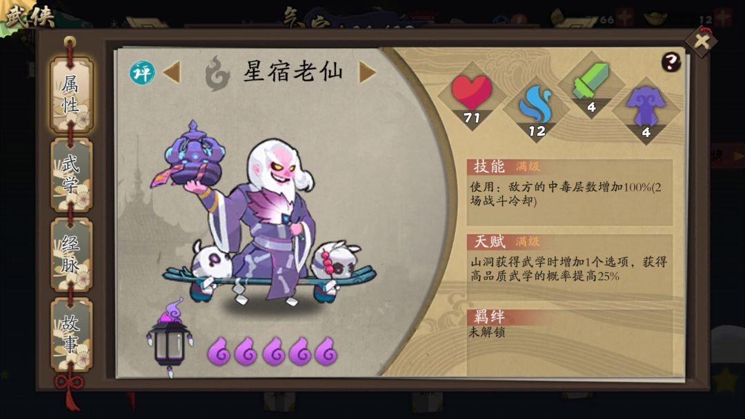 星宿老仙:提供嗜血大法翻倍毒,技能可以翻倍毒偶尔处理毒不够的情况