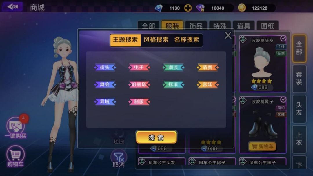 与此同时,玩家可以使用钻石直接购买整套主题服装,也可以购买单独的发型、上衣、下装、鞋子、袜子等服装,还可以购买到头饰、手套、眼镜、颈饰、美瞳等装扮,玩法最大的乐趣在于,可以根据自己喜欢的主题风格搭配出一套独一无二的装扮,人人都是造型师。