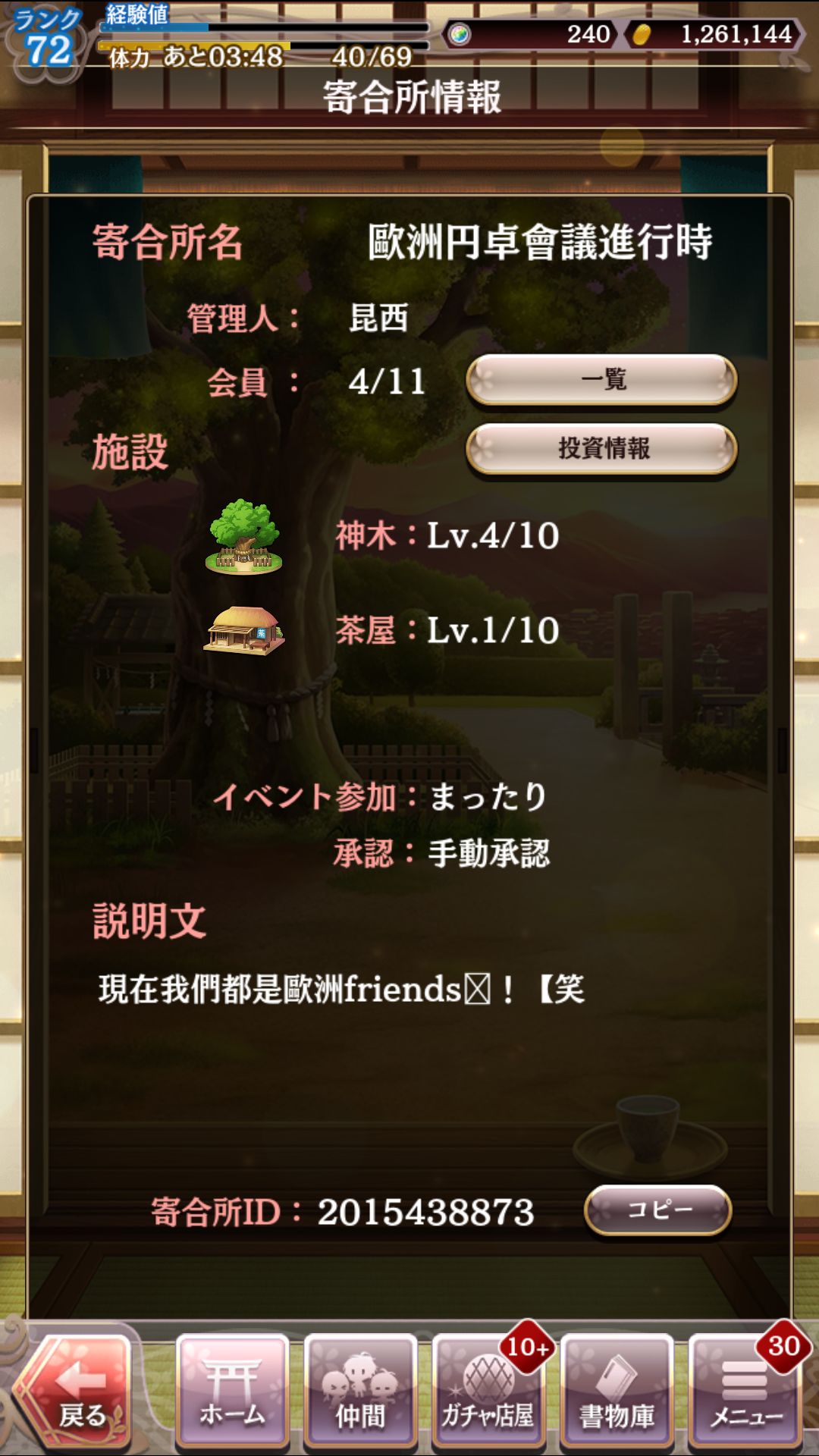 工会名:歐洲円卓會議進行時,id2015438873。工会只有四个人2个死鱼1个咸鱼一个我tat,工会pt堪忧,我会打个人100w只求来让工会pt提升到一共150w的小伙伴们!快来不那么咸鱼的小伙伴们!一起来舔小哥哥们呀!