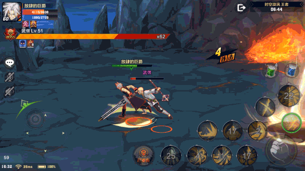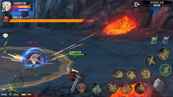 进入战斗后,如果是远程职业,直接可以利用中长距离的AOE技能,在双棍之虎的前方释放。释放技能后,迅速向Y轴方向移动2-3个身位,即可躲避光轮攻击。如果发现双棍之虎想要起跳,利用位移技能反向逃离即可。