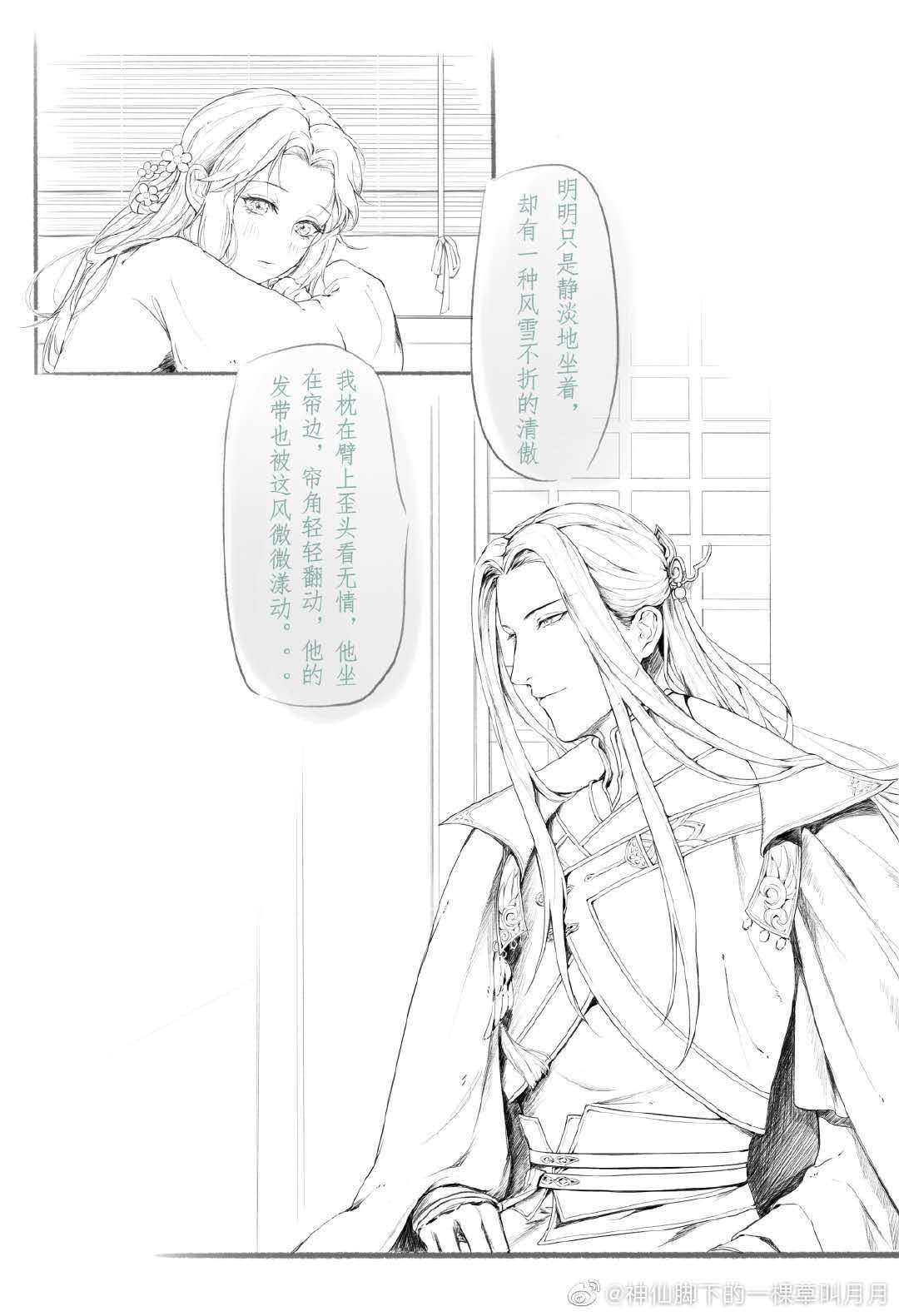 我枕在臂上歪着头看无情,他坐在帘边……