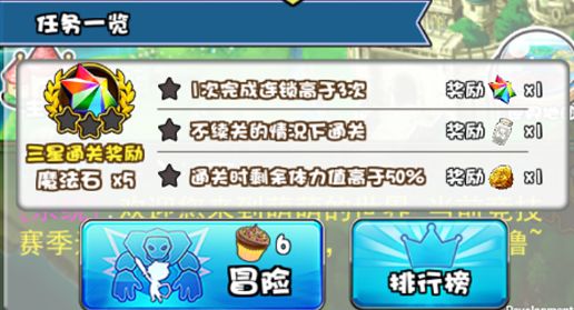 《公主萌萌消》为冒险者们提供了360个丰富多彩的挑战关卡。每个关卡都设定了3个任务,完成任务即可获得一份奖励,并获得一颗星,三星通关可获得额外奖励。