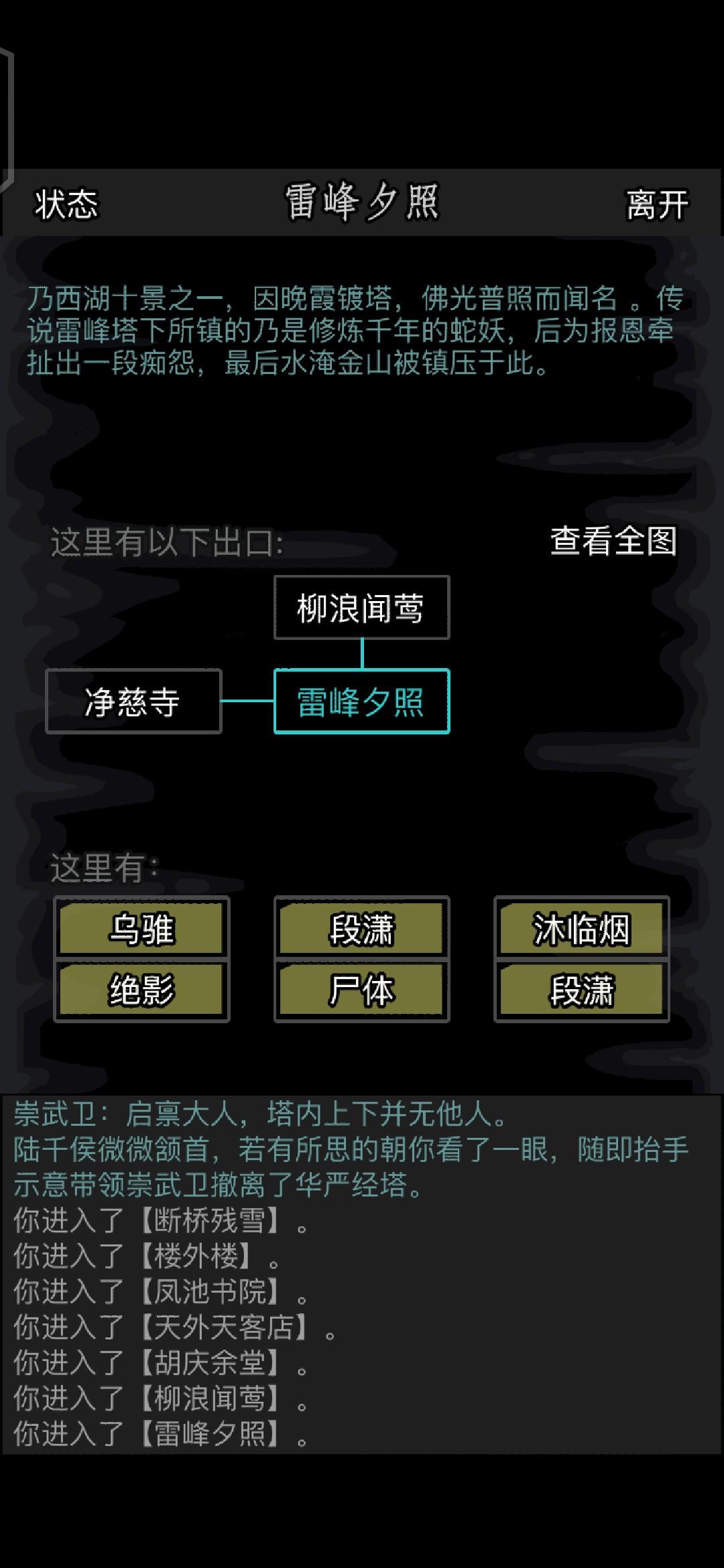 前面的剧情都正常走,到了雷峰夕照之后,小沐沐会问段渣男愿不愿意和他私奔,等这两货撒完狗粮之后,会冒出一个宠物卫,干掉这个宠物卫之后,按照正常的剧情要去跟段渣男和小沐沐对话,段渣男会拜托主角护送小沐沐,小沐沐会告诉主角她让袁备胎藏在华严经塔了。但楼主昨天杀完宠物卫之后忘记对话了,直接跑去了华严塔。