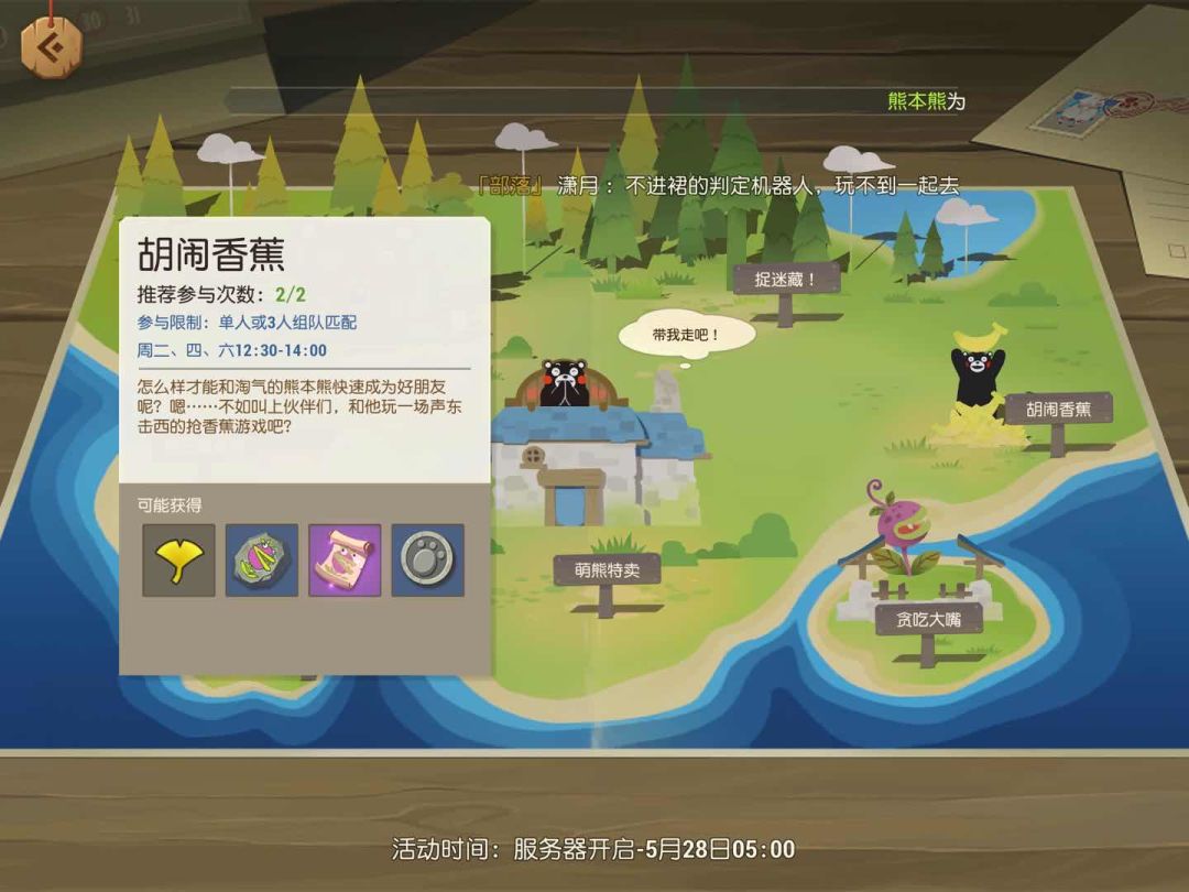 美食祭是部落活动,拼出藏宝图按指示寻找材料。最后会发宝箱,散落在熊本熊出现的四周。可以开多个,五个上限?这个开出来什么也看脸QAQ