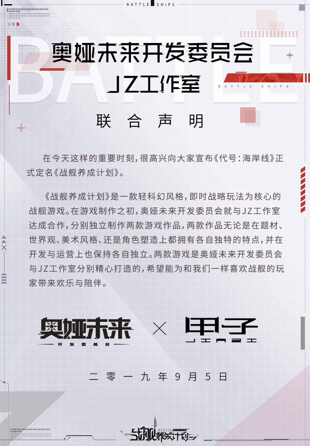 在这样一个重要的时刻,我们奥娅未来开发委员会与JZ工作室联合声明: