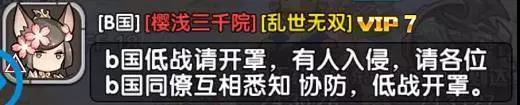 11月22日凌晨刚更新完,九大陆B国遭到A国11V大佬胤清瑜、Bisu带队收菜,B国四大公会彼堡、孤高游侠、乱世无双、说唱会馆皆被光顾,B国各大遗迹满城火光。B国民众虽然及时发现弹幕提醒开罩,但是并没有什么效果。何奈B国大佬都不在线,也并未组织起有效反击。事后,B国官员表示 会商议今天收菜的事。
