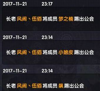 另外,暗影会长在登陆游戏后发现,不止是被打了这么简单,公会成员从原来的将近满员,一直到现在的人刚过半,疑惑心大起的他点开公会日志,发现公会成员并不是自主退出公会,而是被一名叫风阁、伍佰长老踢出去的。