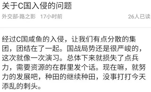 不过繁星会长在之后更新了qq群公告,并且迁国B国准备卧薪尝胆。