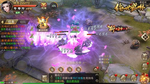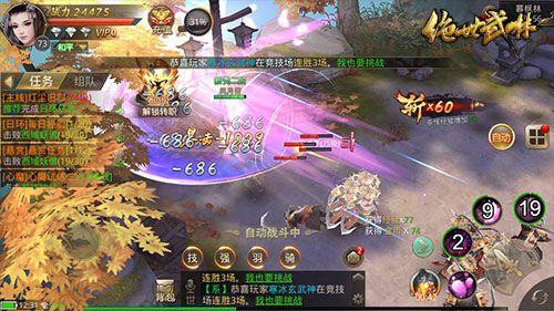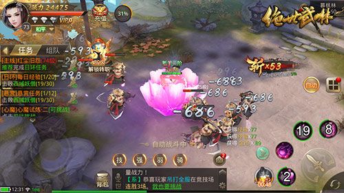 考虑到玩家不能随时随地守在手机旁边,同时也为了让玩家合理安排游戏时间,《绝世武林》设置了自动战斗模式。只要点击界面上的自动按钮,角色就可自助战斗,帮助玩家刷经验。可以根据自身需求而随意切换的战斗模式,是不是很贴心!