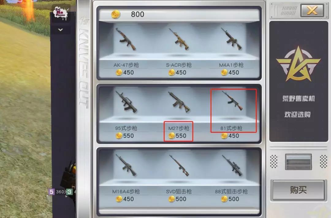 在本次更新过后,售卖机中的81式步枪将取代AUG步枪来和大家见面啦,M27步枪的售价也将调整为550。玩家们可以根据自己的使用偏好和作战需要,来选择合适的枪械。