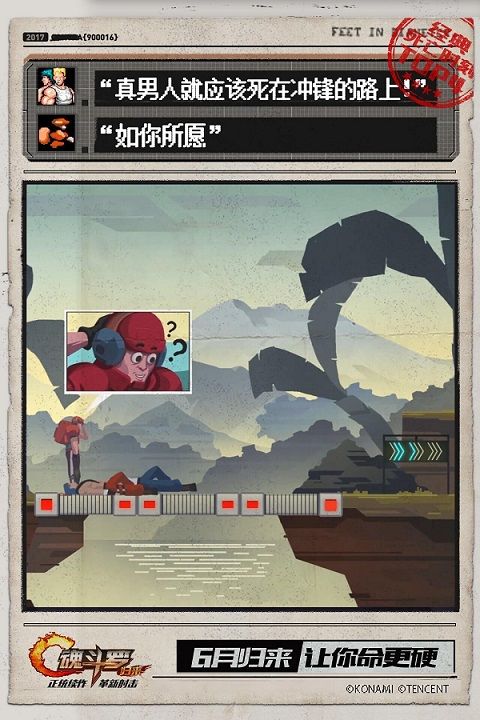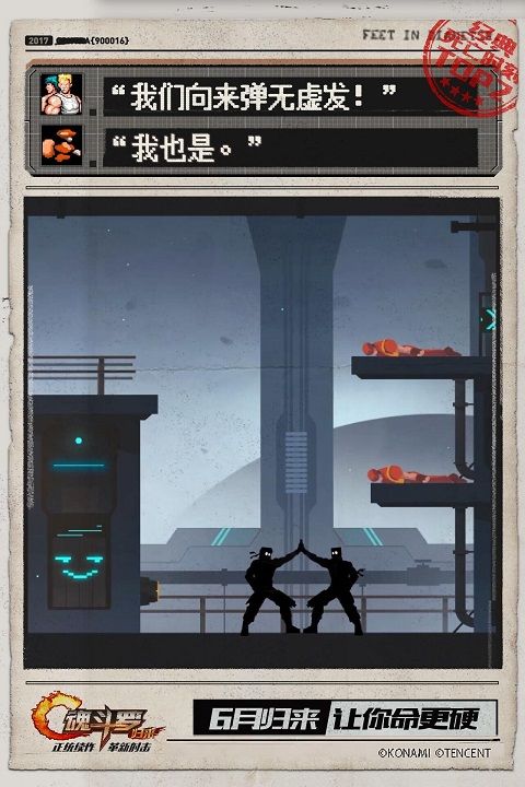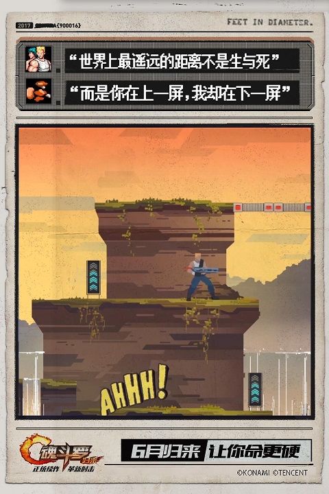 魂斗罗是一款经典动作射击闯关类游戏,在当时的游戏市场上,可以说是一款相当有挑战难度的游戏。毕竟那时候消息闭塞,压根没有攻略之说,更何况那时年少,玩游戏图的是爽快,很多人也不会刻意去深度研究卡位、战斗技巧等,就是最基础的突突突、闪闪闪,于是就有了N种死亡经历。如今,由腾讯联合日本KONAMI共同研发,正版《魂斗罗:归来》动作射击手游将于6月上线,并肩打通关,这次命硬点!