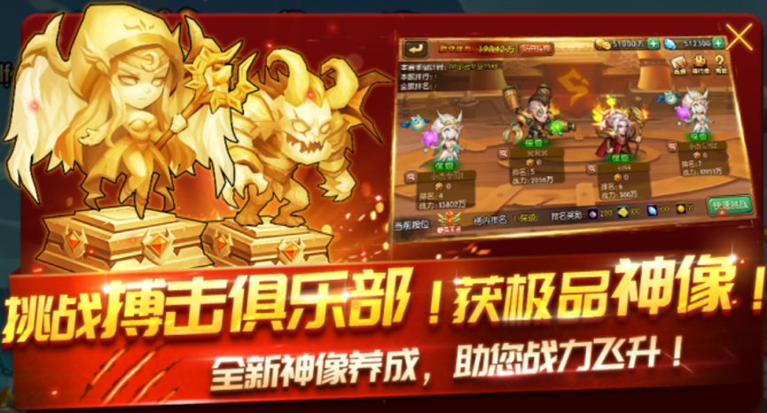 勇士哥哥们要不断的唤醒强大的神像,进行升星及突破,才能发挥神像的最大潜力。