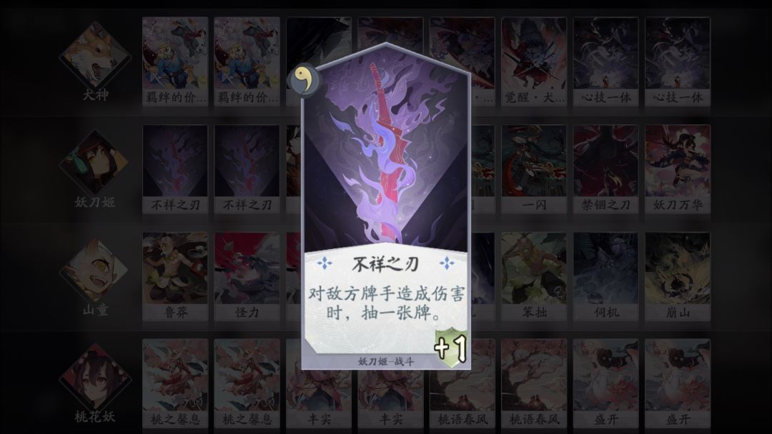假如你的犬神被克制的死死的,一出场就挂,一复活就遭集火,那该怎么办?没事,我们还有杀手锏:爆发超高的妖刀姬!她作用是挡刀,补刀,以及爆发。前期运气不好,没抽到想要的卡,或者犬神不幸死亡(当然尽量避免犬神挂掉…),这时要靠妖姬替你挡血。妖刀的不祥之刃,战意,禁锢之刀均带有护盾,