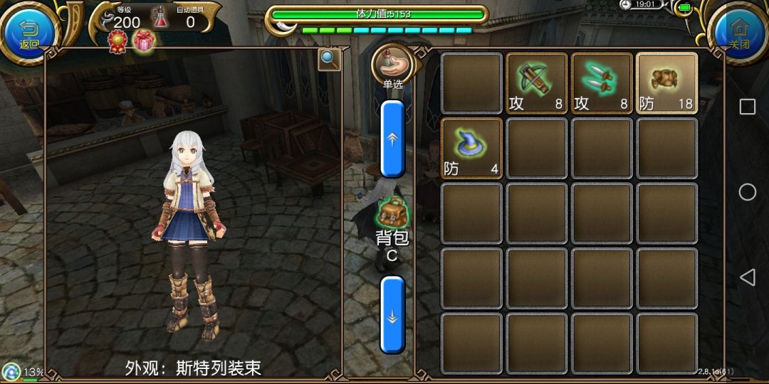 装备“斯特列装束”(衣服,防御力18,附加属性:增加体力上限100点,增加魔力上限100点)