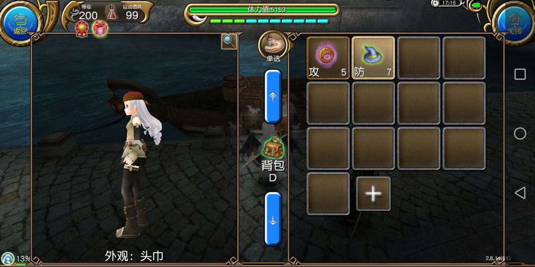 装备:头巾(帽子,防御力7点,附加属性:回避加2,体力自然恢复加5%)