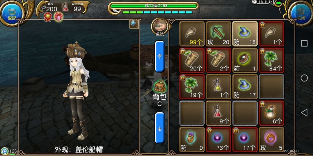 装备:盖伦船帽(帽子,防御力18,附加属性:对火属性伤害增加3%,体力上限加6%,回避减少6%,抗火属性减少9%)