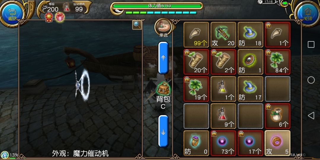 装备:魔力催动机(魔导具,攻击力5,附加属性:魔法值上限加100点,附带元素水属性,对火属性克制)