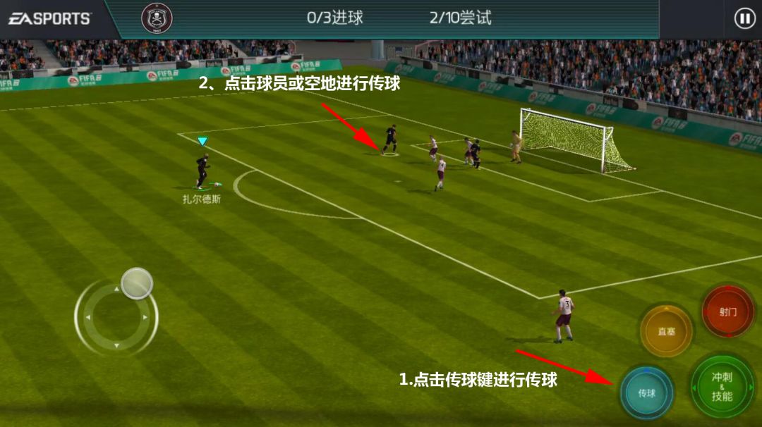 第一种:直接点击传球键即可,此时双方周围无防守队员,直接点击传球键是最为快捷的一种传球方法。