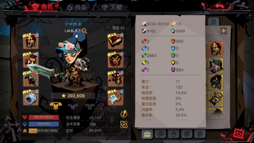 最后巨魔金身 只要放两个技能就没事了,以上就是个人打了3天,不4天的经验,第一次尝试写图文攻略,请大家海涵,月卡党大剑。下面是我的属性图,希望对大剑有所帮助