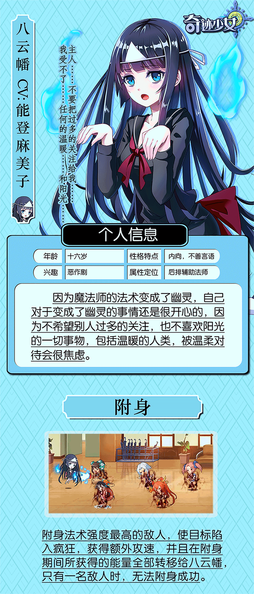 战斗中的八云幡可以附身敌人让她们自相残杀,还可以诅咒敌人让其无法释放技能~