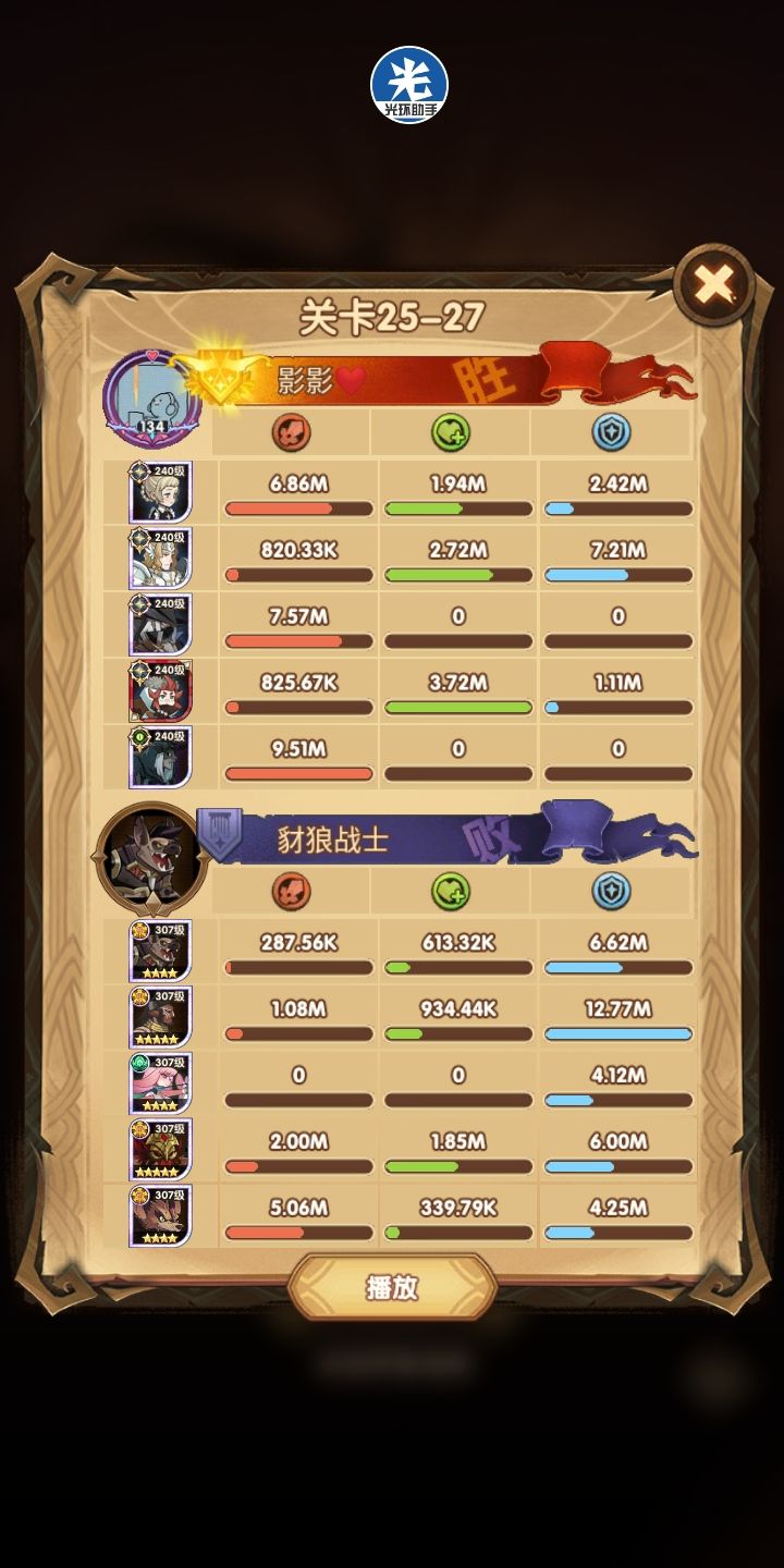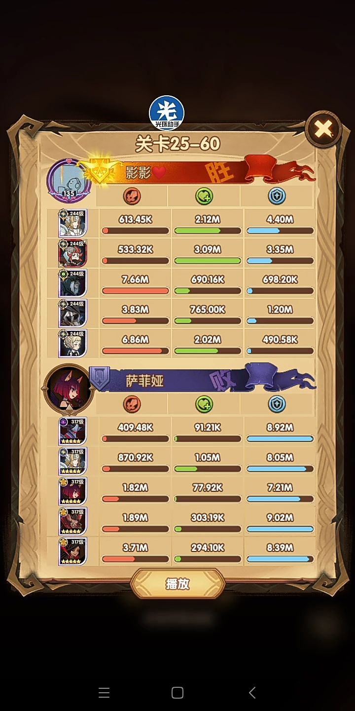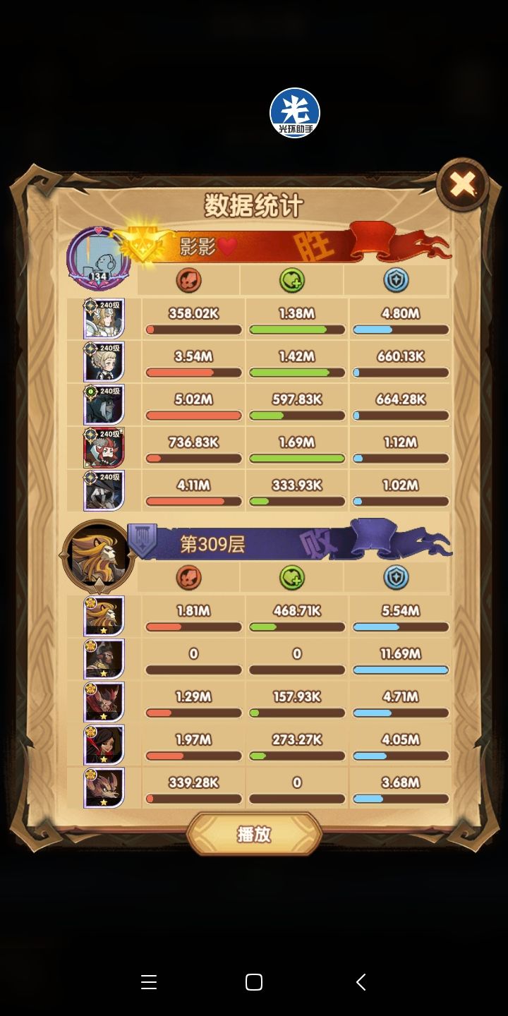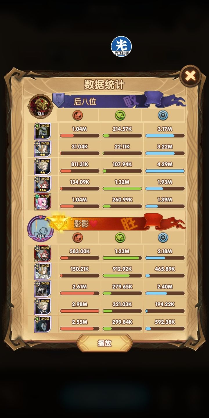 所以说这是尝试代替女妖队的一个方案,其中在这里面呢,女仆是跟着光盾的,一是前排能抗住了(狮子+羊头这种高爆发的)二是为了保证全队的续航~