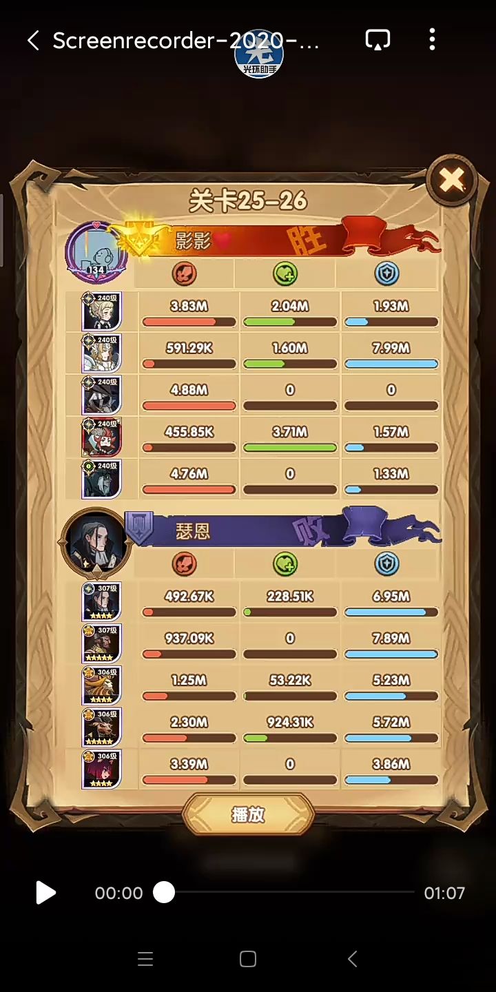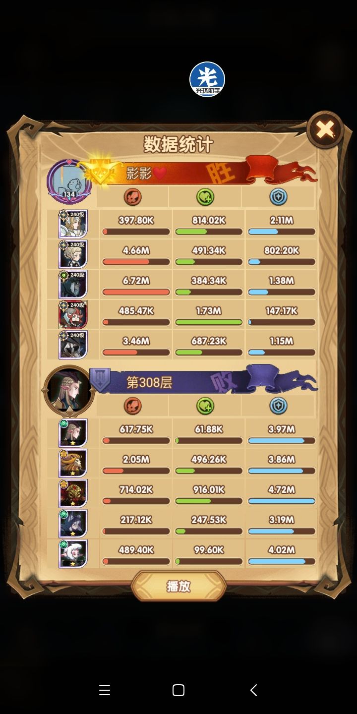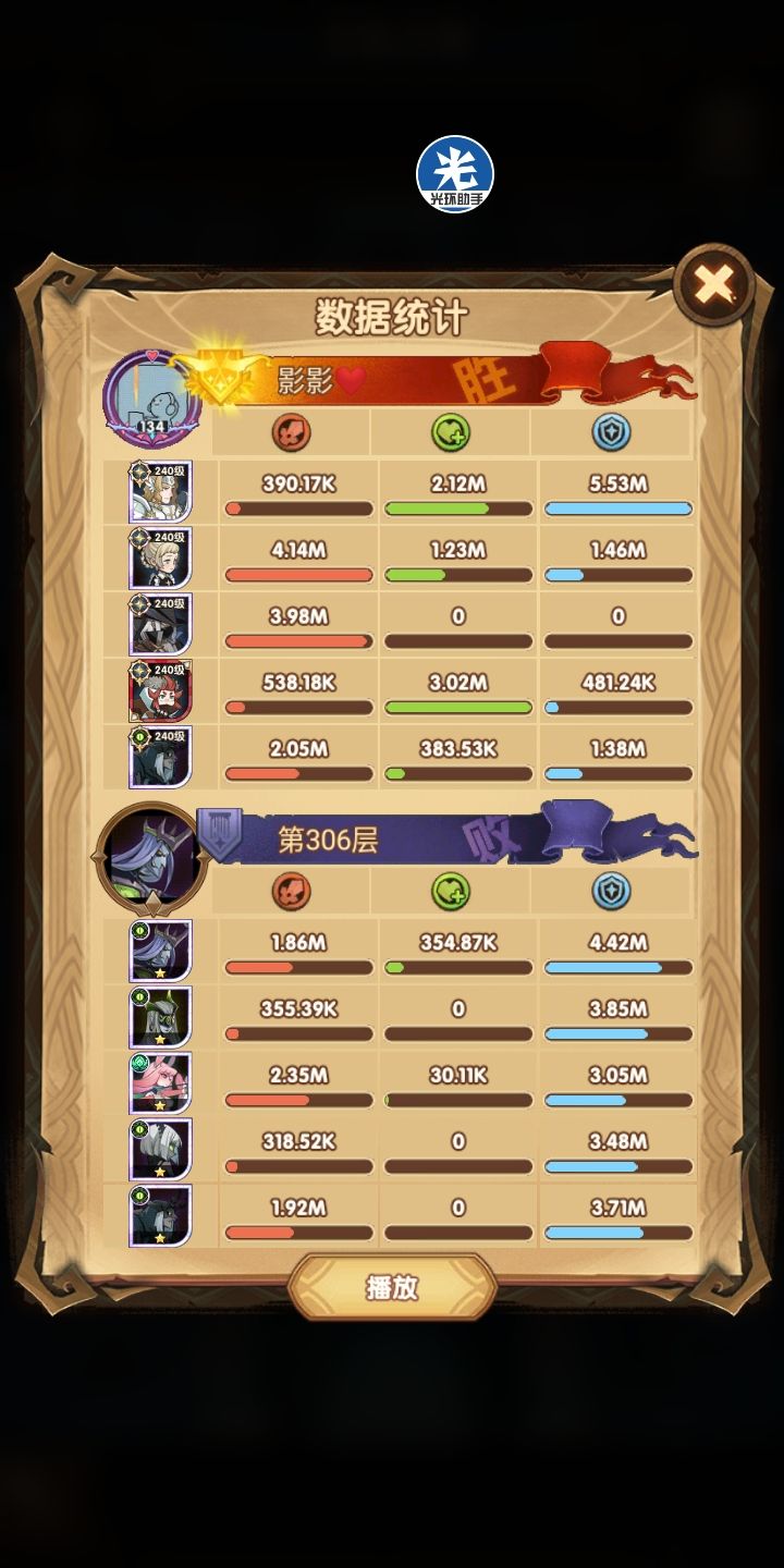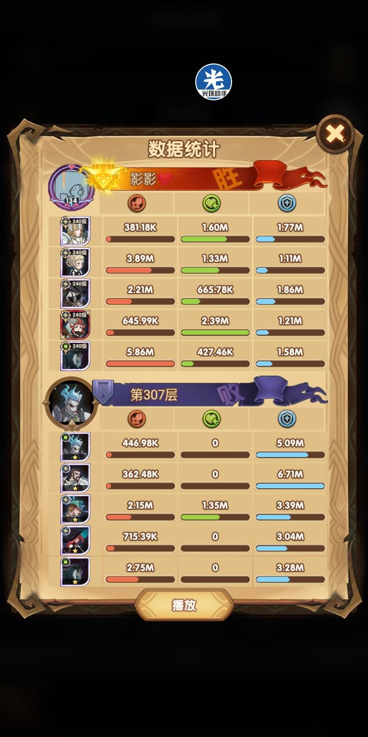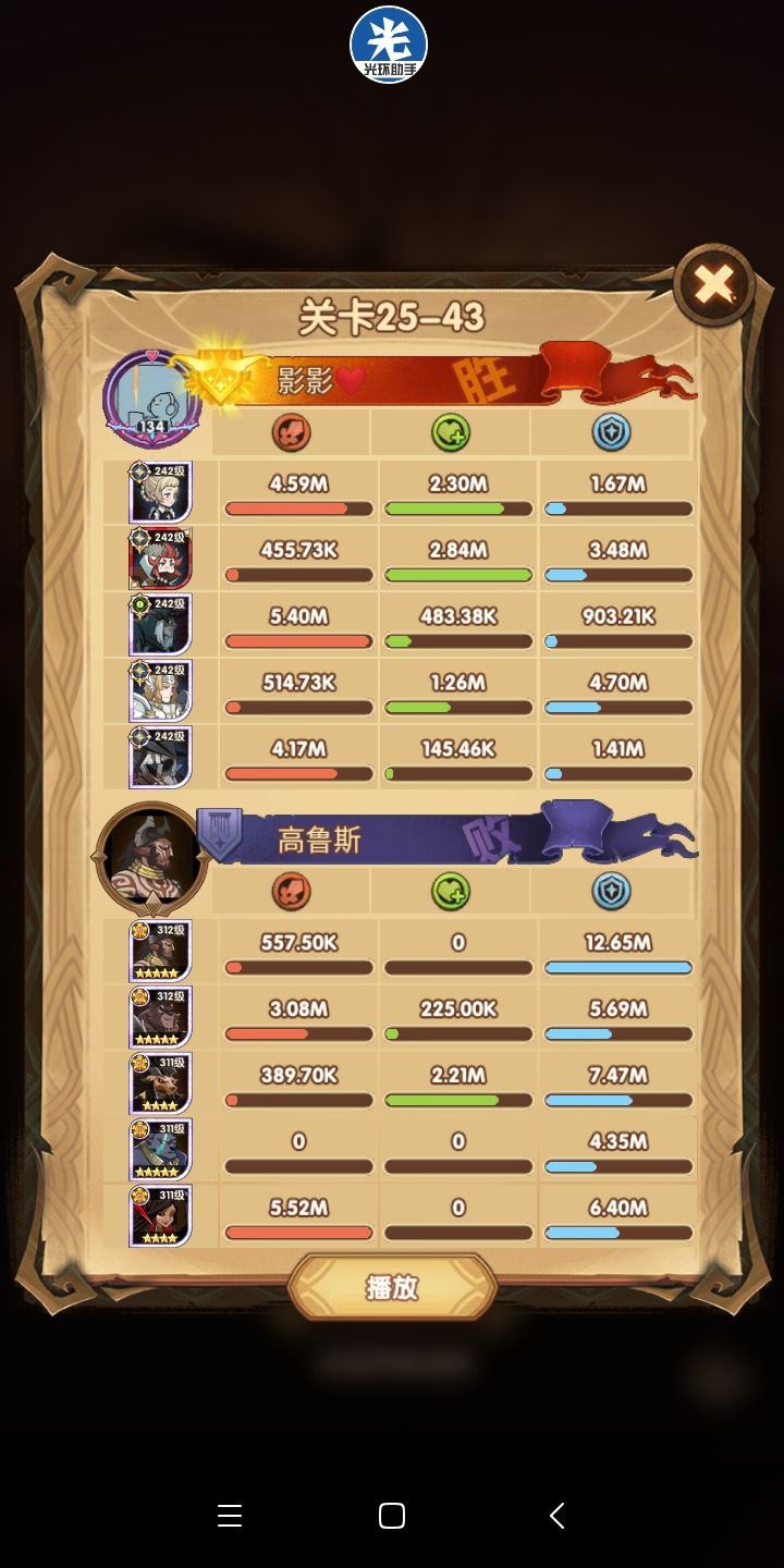 所以说这是尝试代替女妖队的一个方案,其中在这里面呢,女仆是跟着光盾的,一是前排能抗住了(狮子+羊头这种高爆发的)二是为了保证全队的续航~