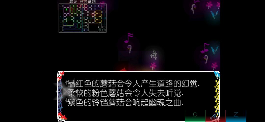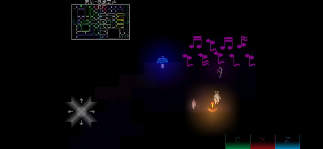之后来到醒来之地,贴在上图墙壁处,树木会消失,向前走进入蘑菇谜题