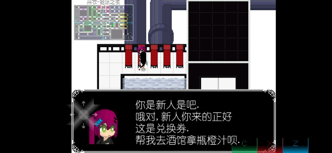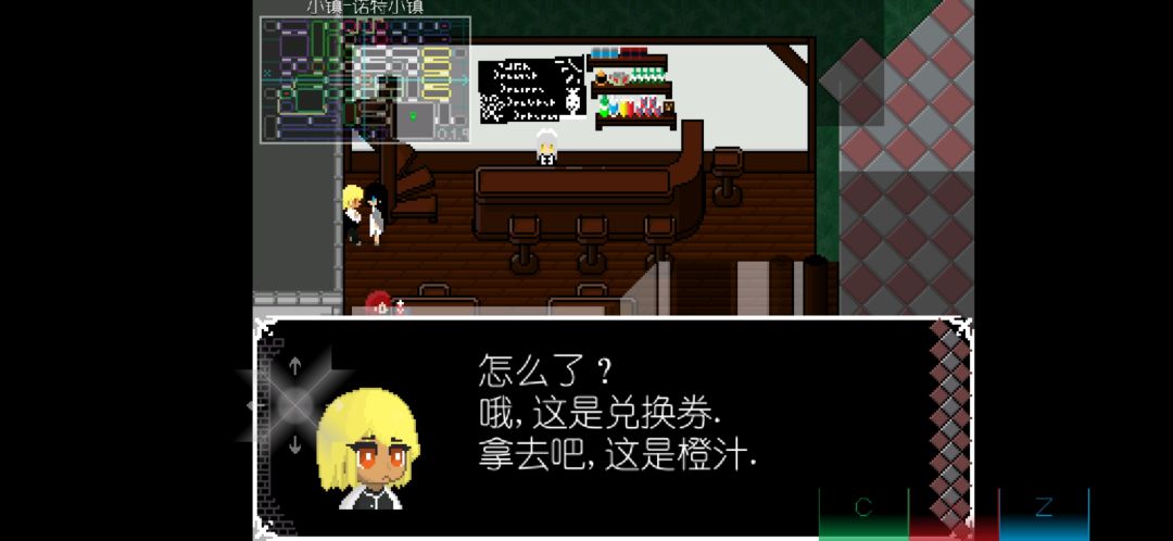 从下一层来到小镇酒馆,找旁边的黄毛换一瓶橙汁