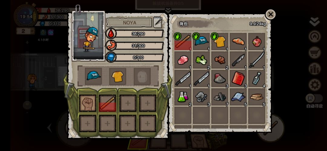 拿完初始物资直接去最近的一,二星房,暂时不用去安全屋,先把背包搜满。现版本背包大幅度扩大(以前一个二星房就搜满了甚至运气好可能拿不下),而且有三天的减伤增益,三天内死亡免费复活(属性补满),不用怕二星房掉血。前往一星房前期丧尸可以尽量刷掉,会掉物资(物资种类有点看脸,除了铁,零件,木材和布料外,还会掉落干脆面和火药,甚至还有罐头和子弹)。木棒耐久比之前不知道高了多少,没必要空手打怪,趁有精力的时候可以多打点(毕竟二星房不太用的着近战打怪,怪一般有好几个),等没精力了就不用打丧尸了。