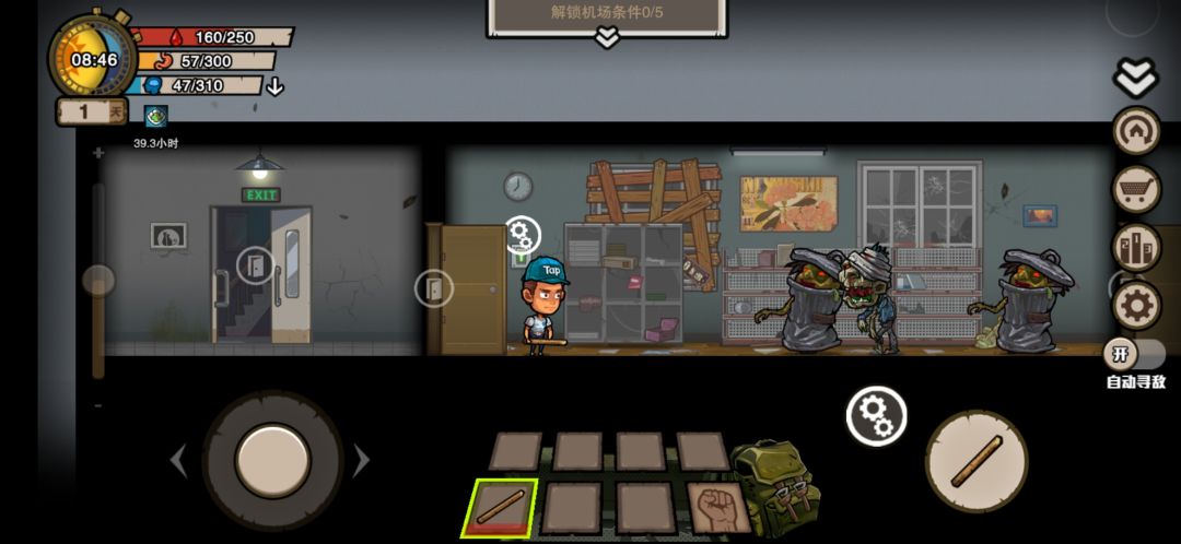 像这种最右边有一个物资但丧尸多且大妈丧尸和普通丧尸就在右侧房间的情况可以直接屏幕右侧设置里退出。