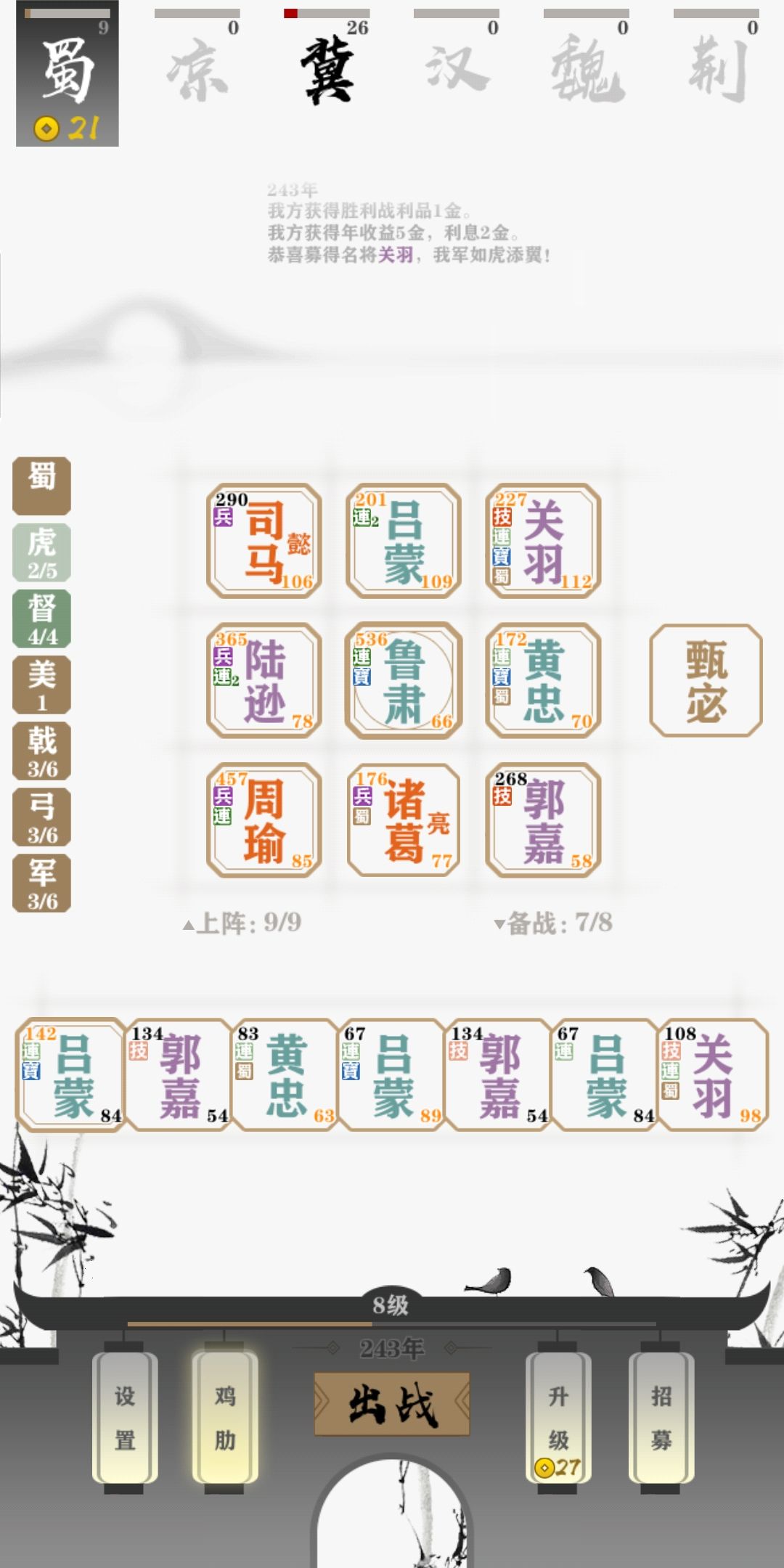 九滴血极限翻盘,选蜀汉想五虎来着,玛德半天就给我来一个刘备,四嘟嘟扎堆出现。巧合搞出来这个牛皮的阵容。真-无敌